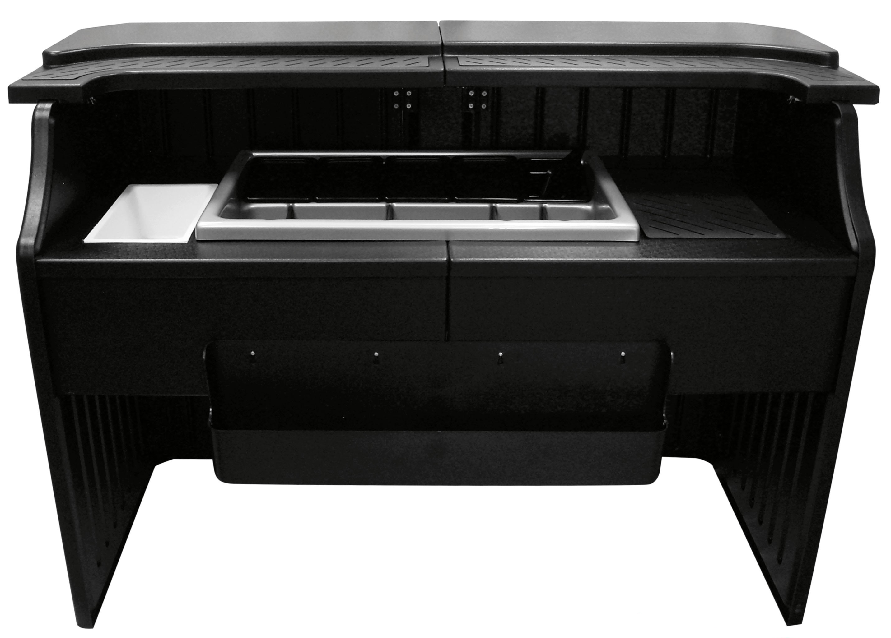 The most durable, easy-to-assemble, and lightweight counter available! Crafted skillfully in synthetic ABS polymers for versatility. Designed to last and withstand high-intensity professional work rhythms. Resistant to weather conditions, saltwater, and crowds of customers with receipts in hand clamoring for their cocktails. Available in two colors: Black and White.