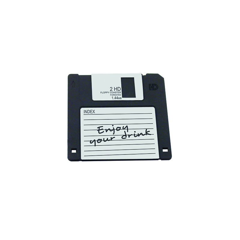 Floppy Disk Coaster is made of natural rubber in the shape of a floppy disk. Great for personalizing your cocktails.